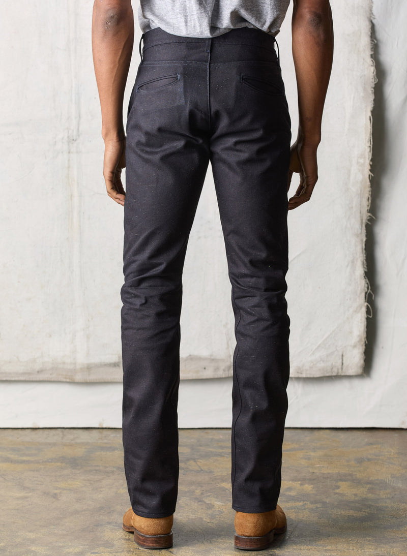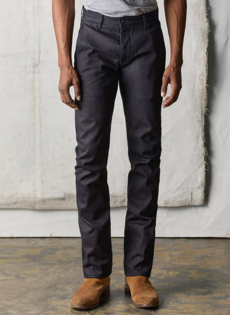(slim leg, 14.2oz rigid Yoshiwa Mills denim selvage denim)