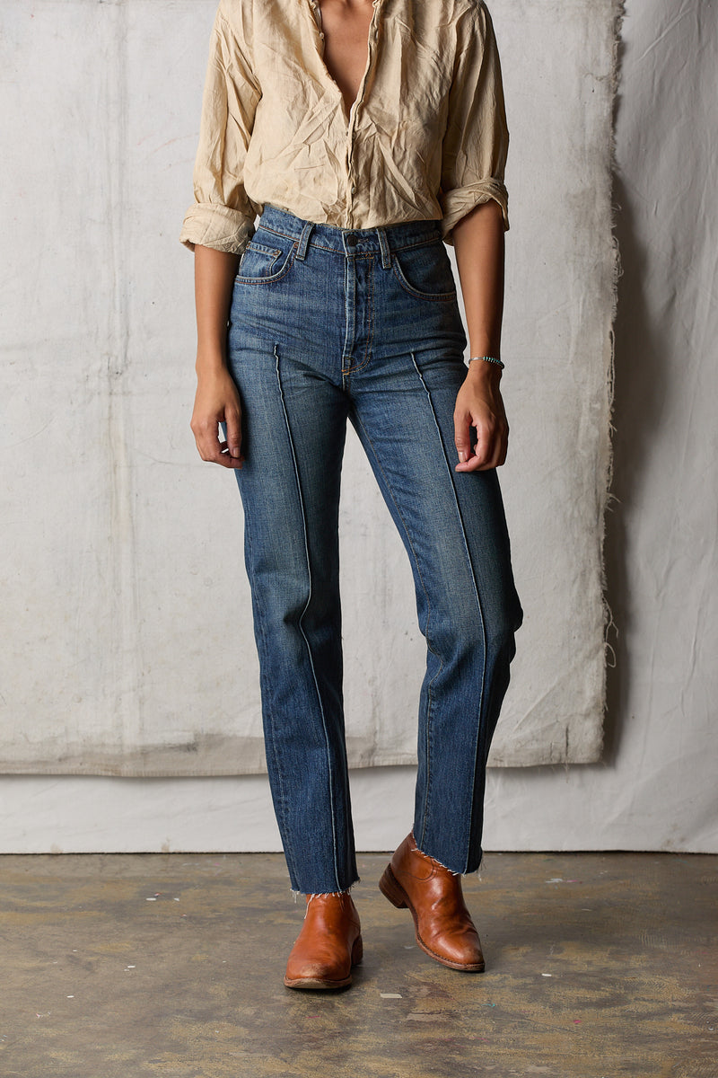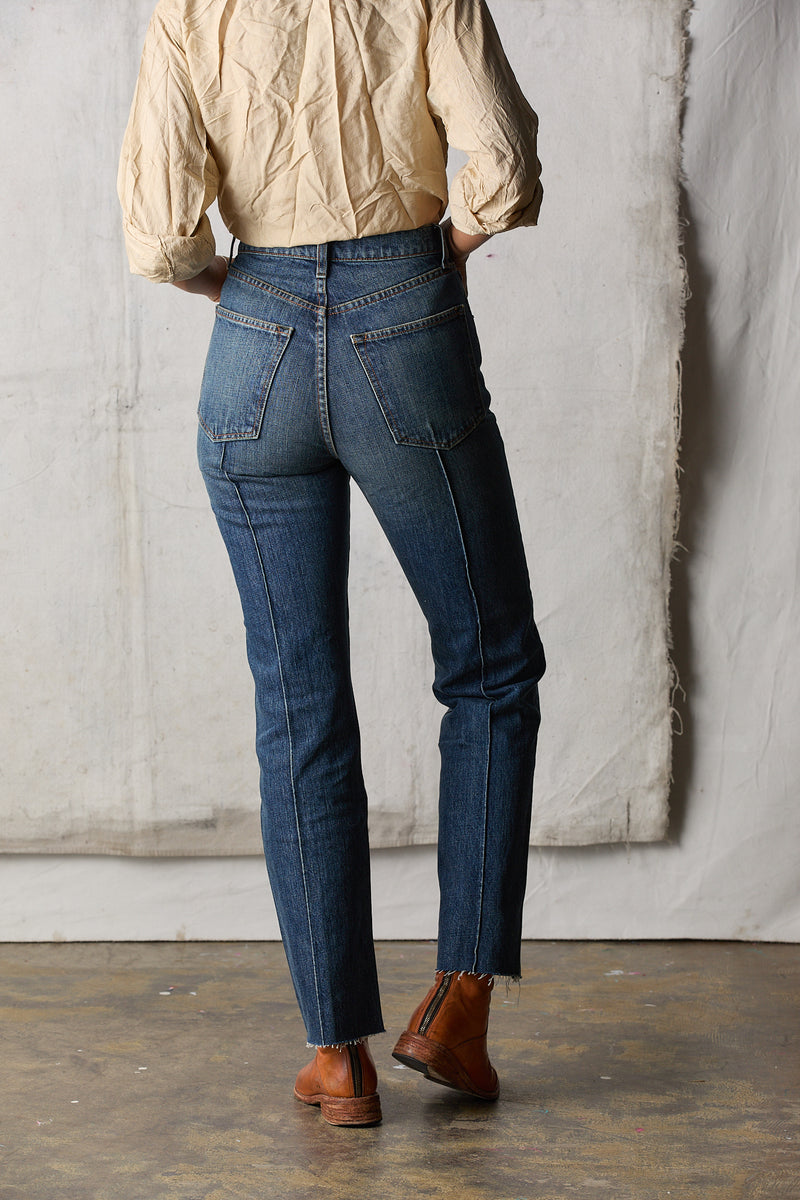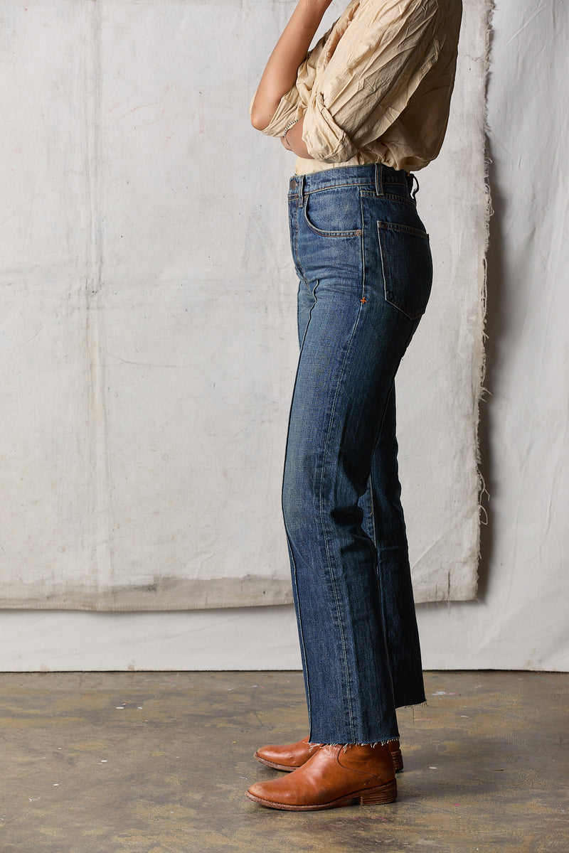 (mid/high rise raw hem, 14.75oz Cone Mills denim)